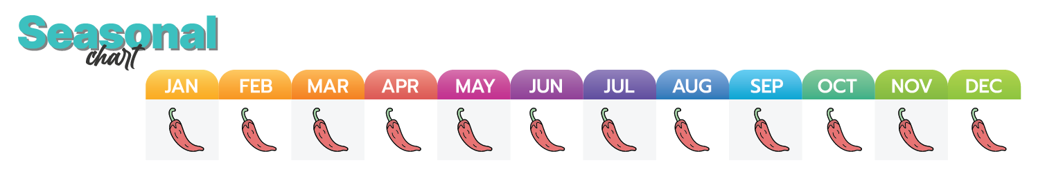 ระดับความเผ็ด: สูงมาก (เผ็ดร้อนแรงระดับเดียวกับพริกขี้หนูสวน มีค่าความเผ็ดประมาณ 65,000 - 100,000 Scoville)